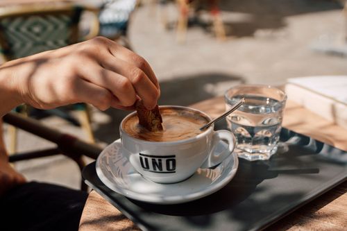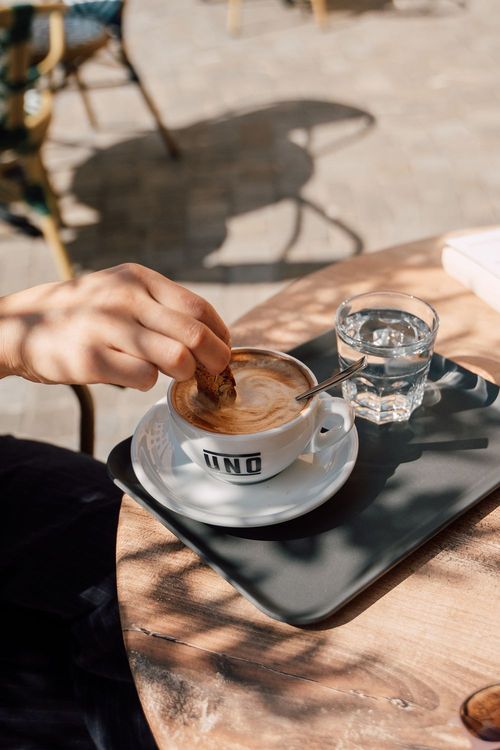 Der Kaffee wird direkt gegenüber von der Rösterei Uno frisch geröstet, ist vollmundig, aromatisch und wird mit viel Liebe zubereitet. Morgens erwarten dich feine Frühstücks-Kombinationen: herzhaft oder süss, klassisch oder vegan.
